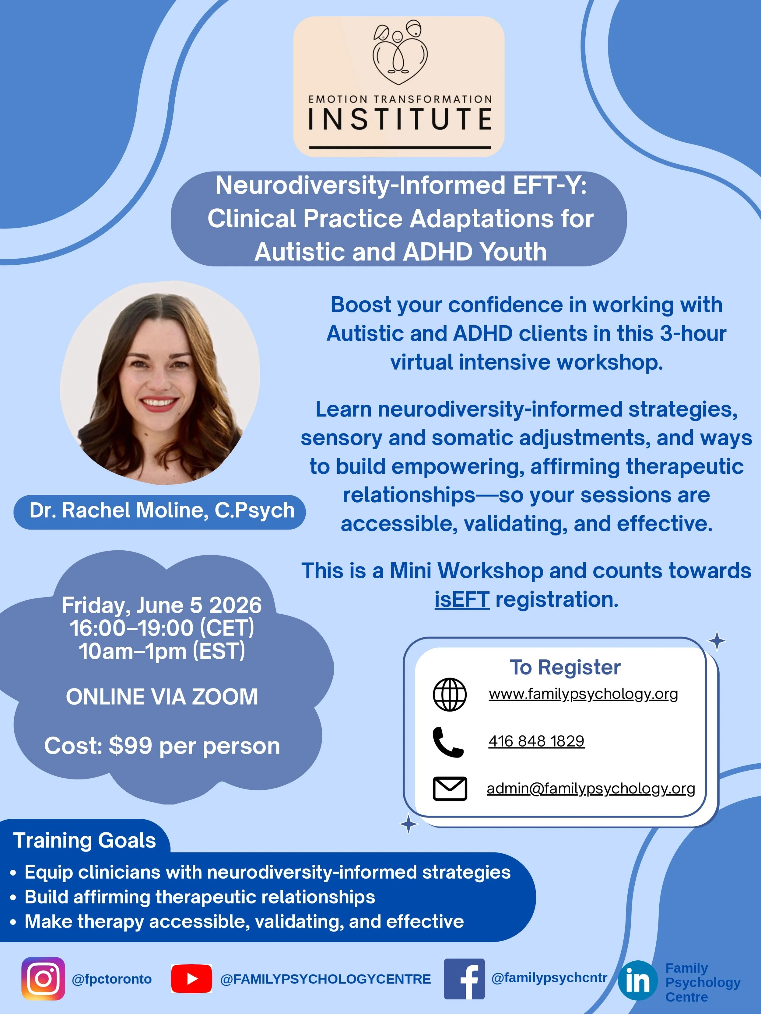 Join Dr. Rachel Moline, C. Psych. for Training in Neurodiversity-Informed EFT-Y: Clinical Practice Adaptations for Autistic and ADHD Youth.